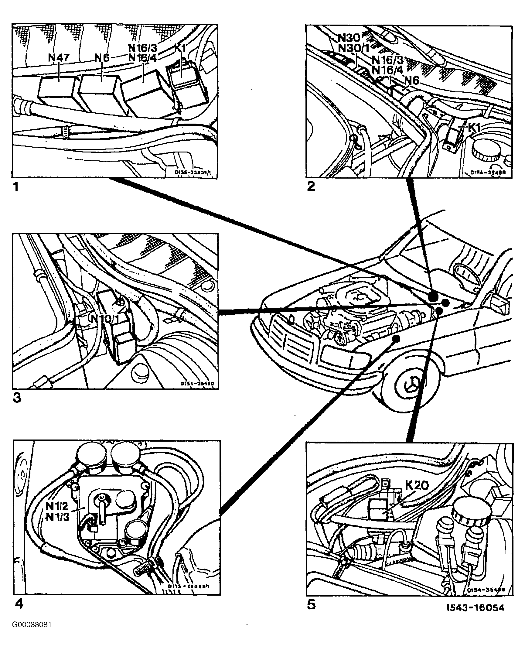 ABS/ASR Control Unit, N30/1 Center rear of engine compartment, mounted to firewall. See Figure .