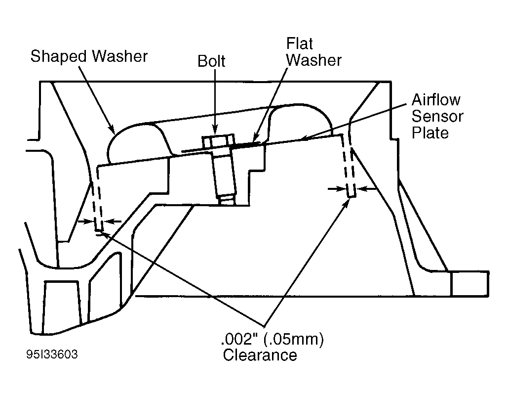 - Fit airflow sensor plate, shaped washer and flat washer onto lever. Tighten NEW micro-encapsulated bolt only slightly so that airflow sensor plate can still be moved. See Fig 1 .