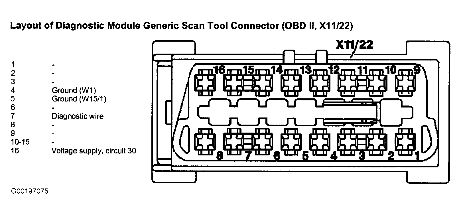 Diagnostic module (OBDII, N59/1) uses 2 different plug connectors for DTC readout: