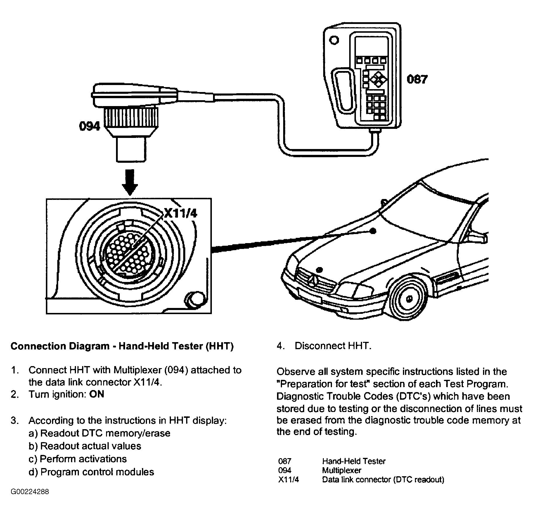 Connect the impulse counter scan tool to data link connector (X11/4) according to connection diagram. See Fig 1-Fig 3 .