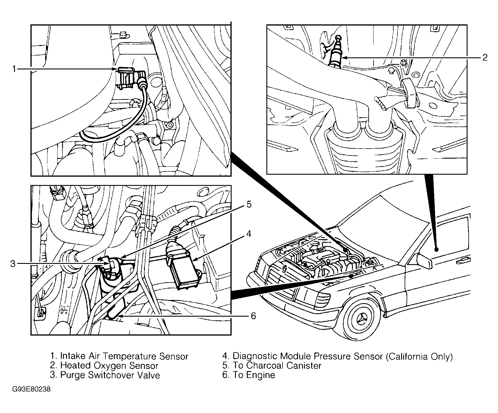 The diagnostic module pressure sensor is located in left rear corner of engine compartment. See Figure . The diagnostic module pressure sensor senses intake manifold absolute pressure. The diagnostic module pressure sensor converts pressure value to a voltage signal and sends it to the diagnostic module.