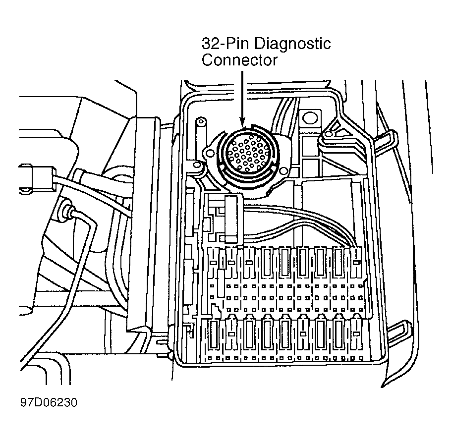 Turn ignition off. Connect HHT to 38-pin diagnostic connector located in engine compartment. See Fig 1. Turn ignition on. Follow manufacturer's instructions for reading fault codes.