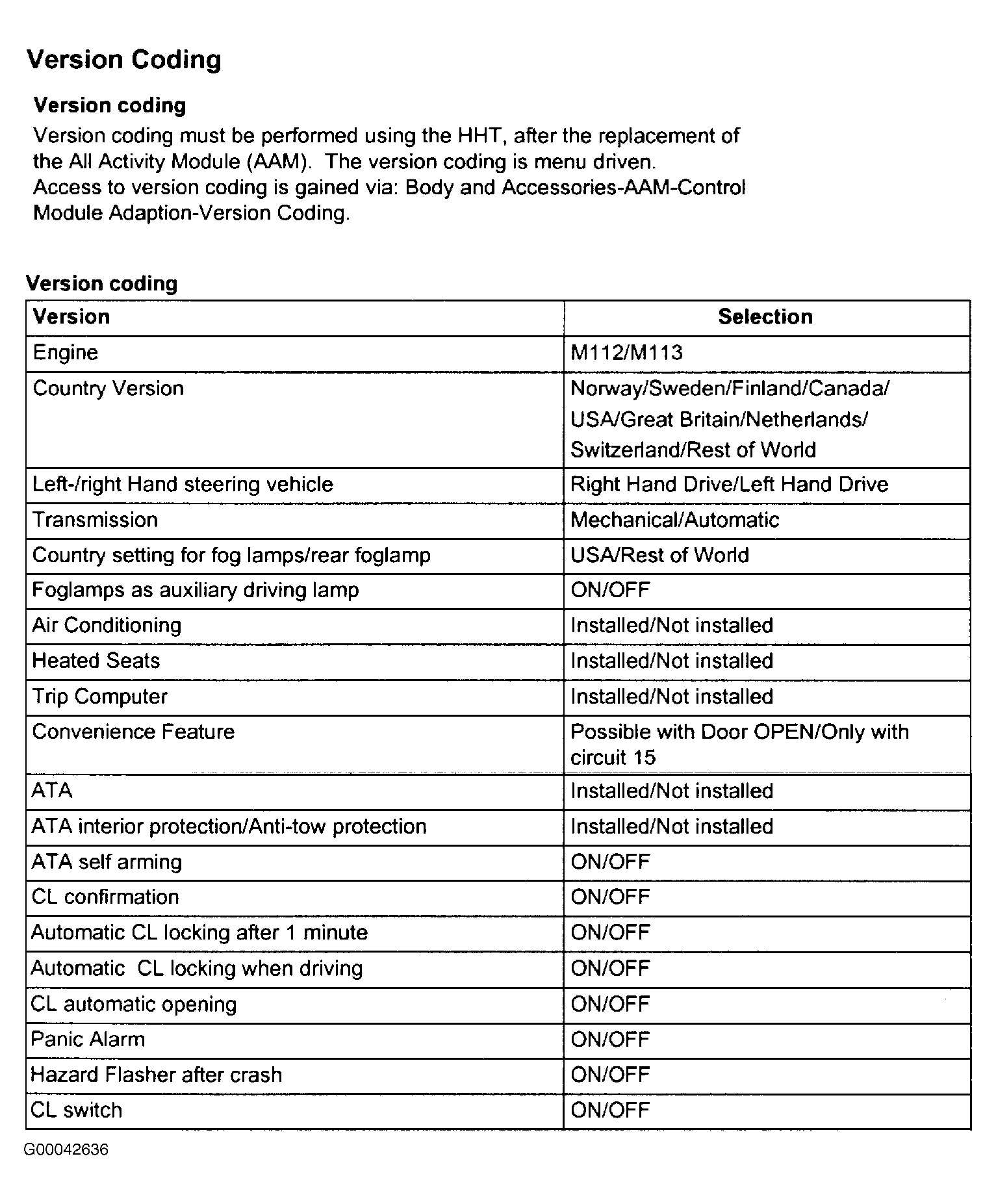 After replacement of All Activity Module (AAM)(N10), Hand Held Tester (HHT) must be used in order to version code AAM. The version coding is menu driven. See Fig 1 .