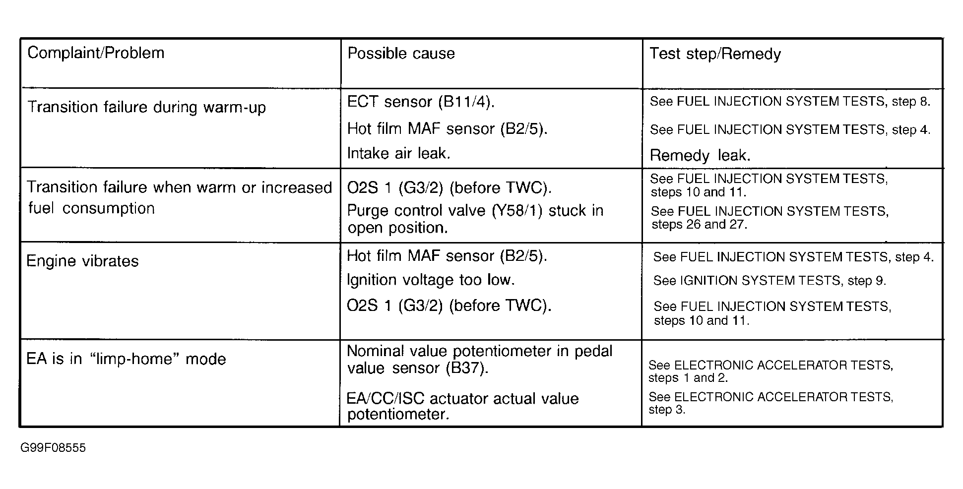 - Engine starts and accelerates poorly when cold. See Fig 1.