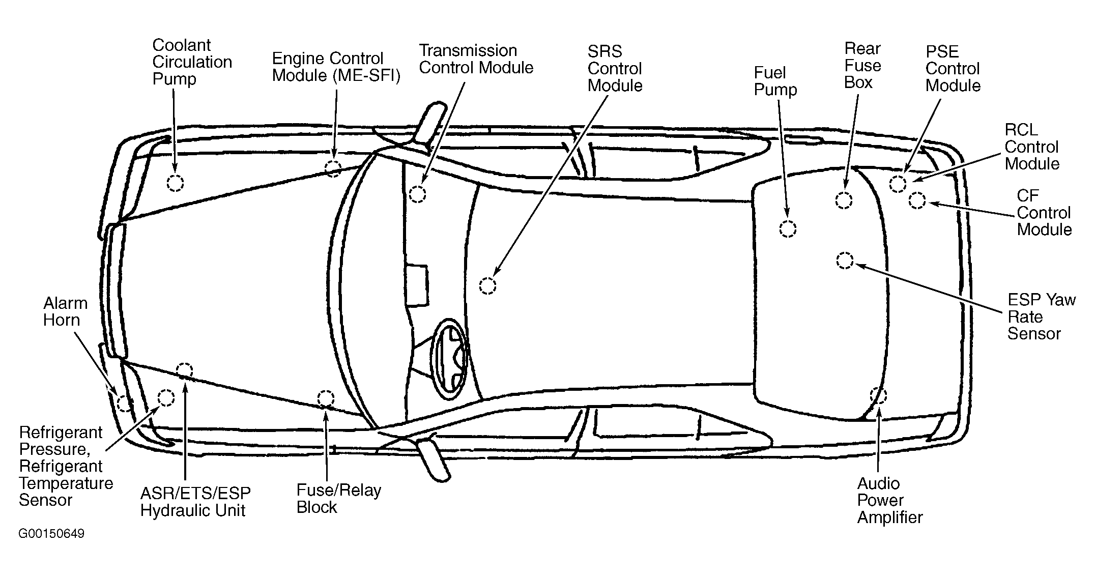 | Engine Control Module (ME-SFI) | At right rear of engine compartment. See Figure . |