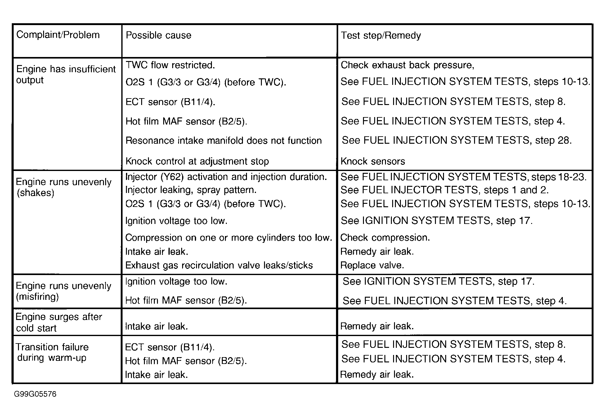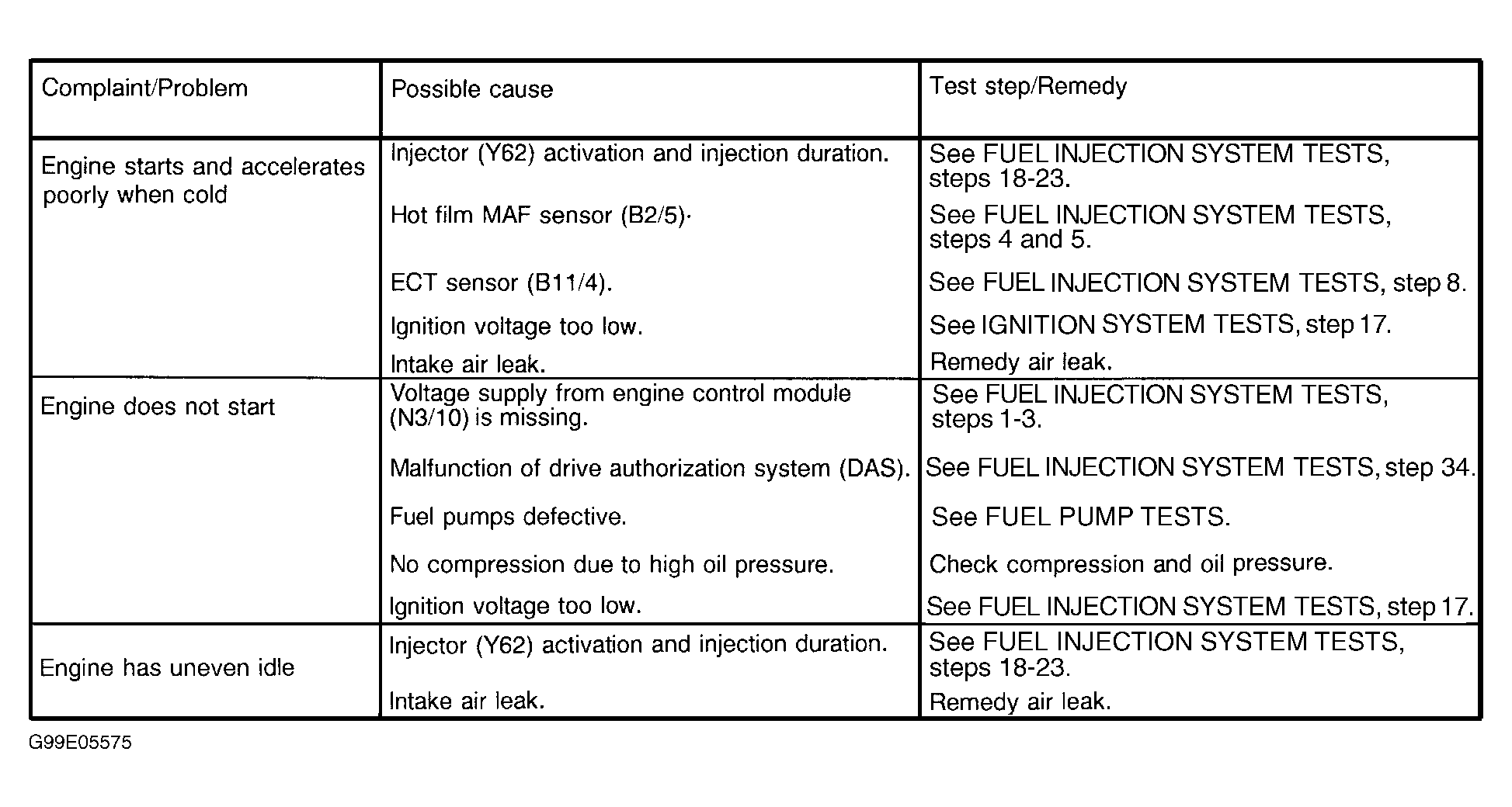 - Engine starts and accelerates poorly when cold. See Fig 1.