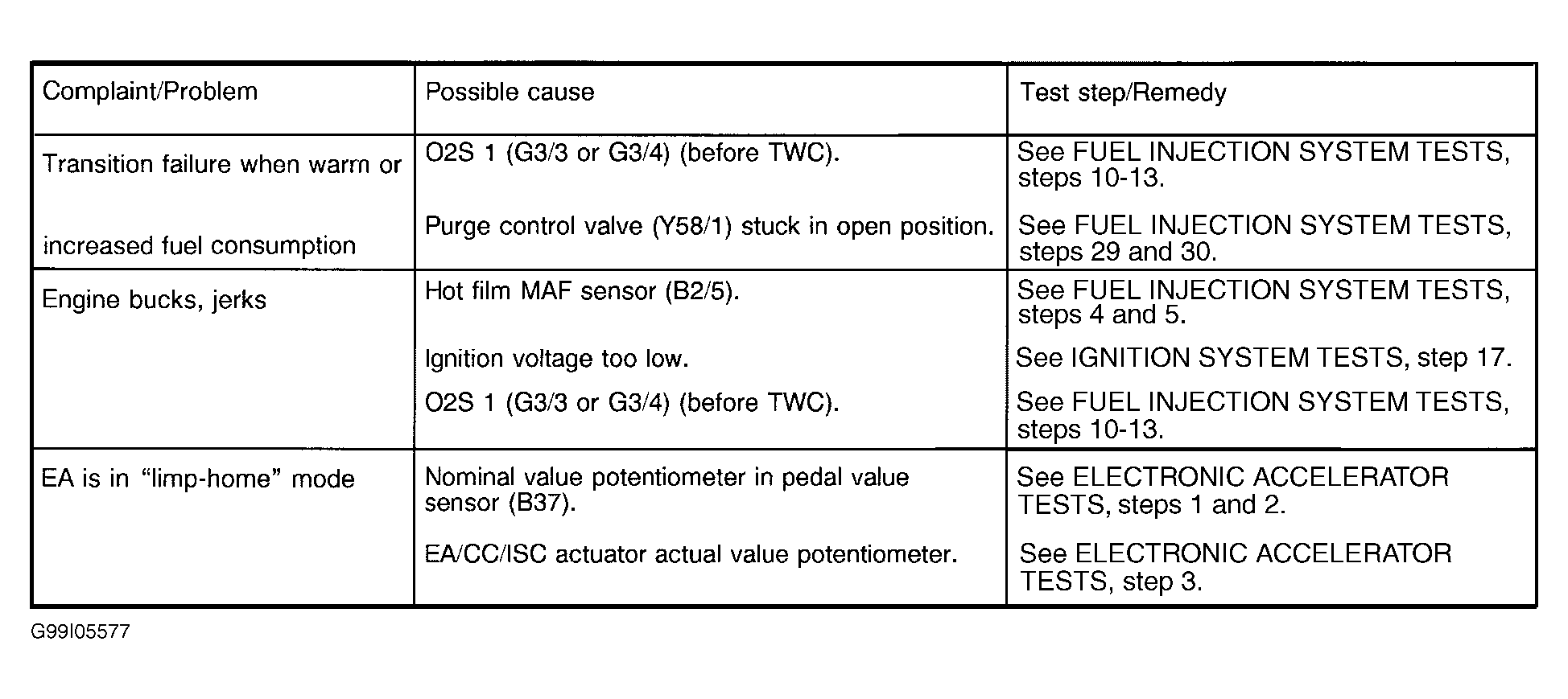 - Transition failure when warm or increased fuel consumption. See Fig 3.