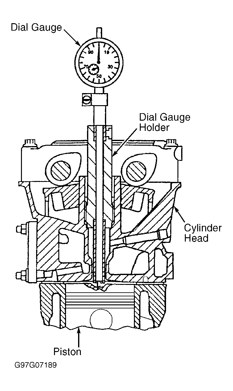 - Slowly turn engine in direction of rotation until pointer of dial gauge stops moving (piston No. 1 at TDC position). Zero dial gauge.
