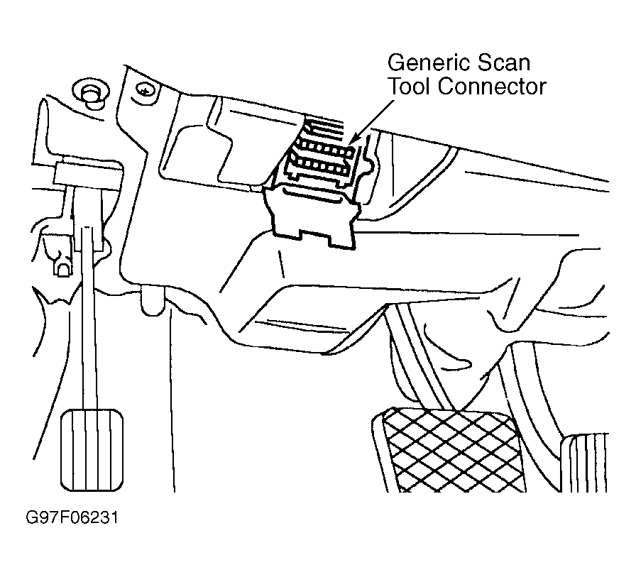 Turn ignition off. Connect generic scan tool to diagnostic connector located under left side of dashboard. See Fig 1. Turn ignition on. Follow tool manufacturer's instructions for reading fault codes. If no fault codes are present, but vehicle is experiencing a problem, go to SYMPTOM DIAGNOSTICS .