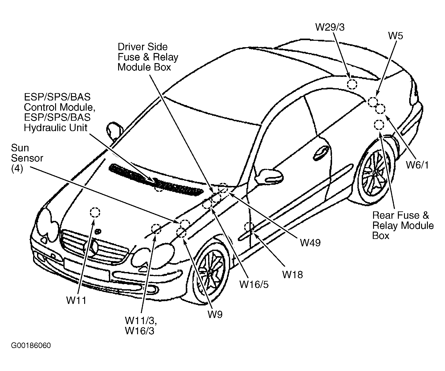 | Rear Fuse & Relay Module Box | At left front of luggage compartment. See Figure. |