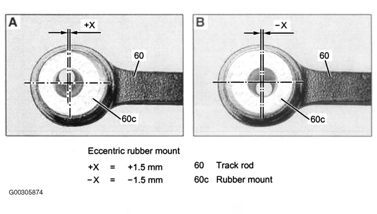 - The offset of .059" (1.5 mm) makes it possible to decrease the toe-in by 15 seconds (A) or to increase the toe-in by 15 seconds (B). See Fig 2
