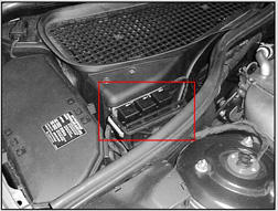 | Right Front Fuse/Relay Module | Right rear of engine compartment. See Figure. |