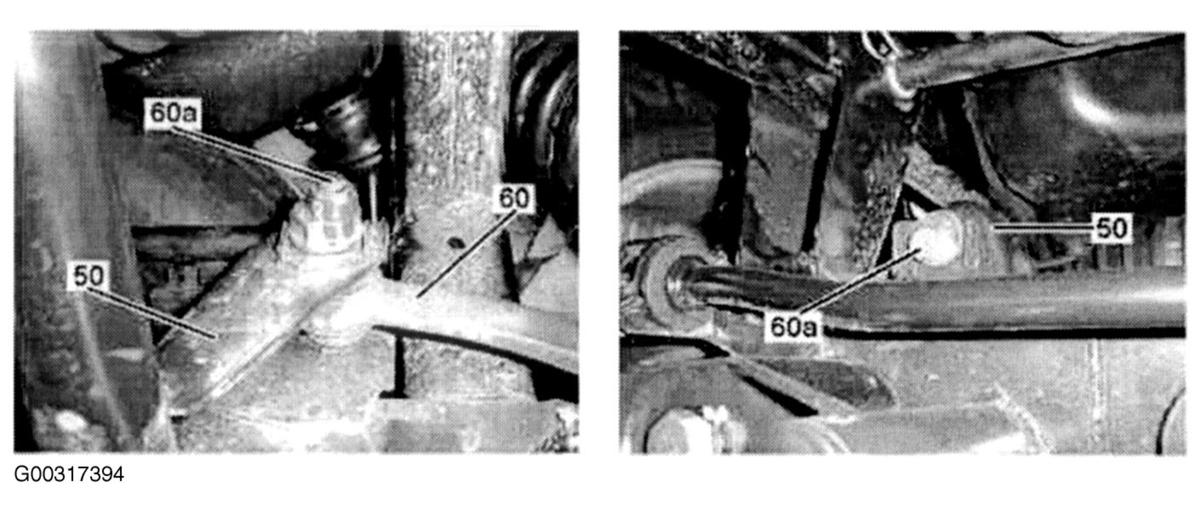 - Adjust toe-in with cam bolt (60a) at mount of the left and right track rod (60) at rear axle carrier (50). See Fig 1 .