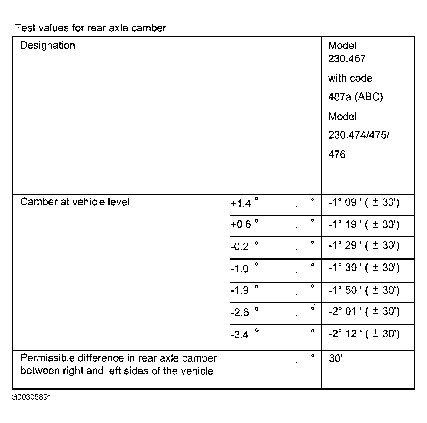 | Rear Axle Camber (5)(6) | |||||||||||||||