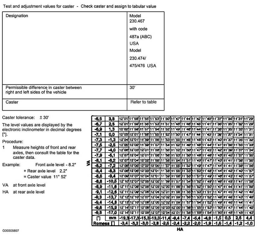 Fig 2: Check & Adjustment Values For Front Caster Assign Tabular Value (Except USA, 230.474/.475/.476)
