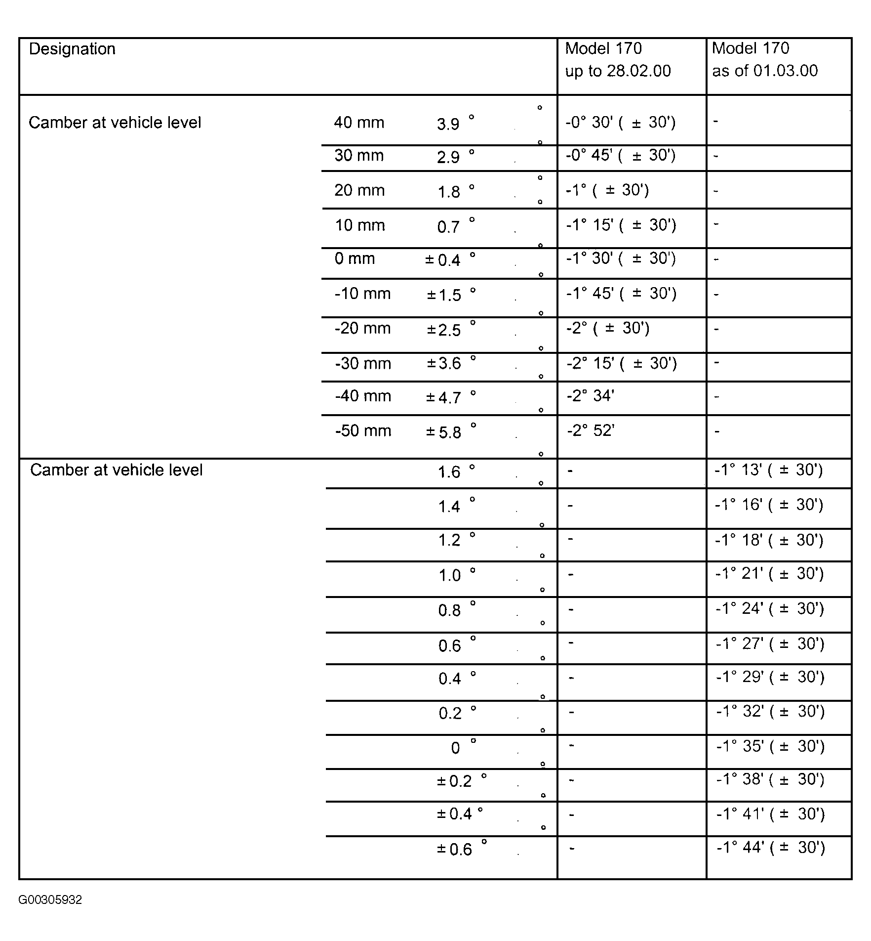 | Front Axle Camber (1) | See Fig 1 & Fig 2 | .... | ||||||||||||||