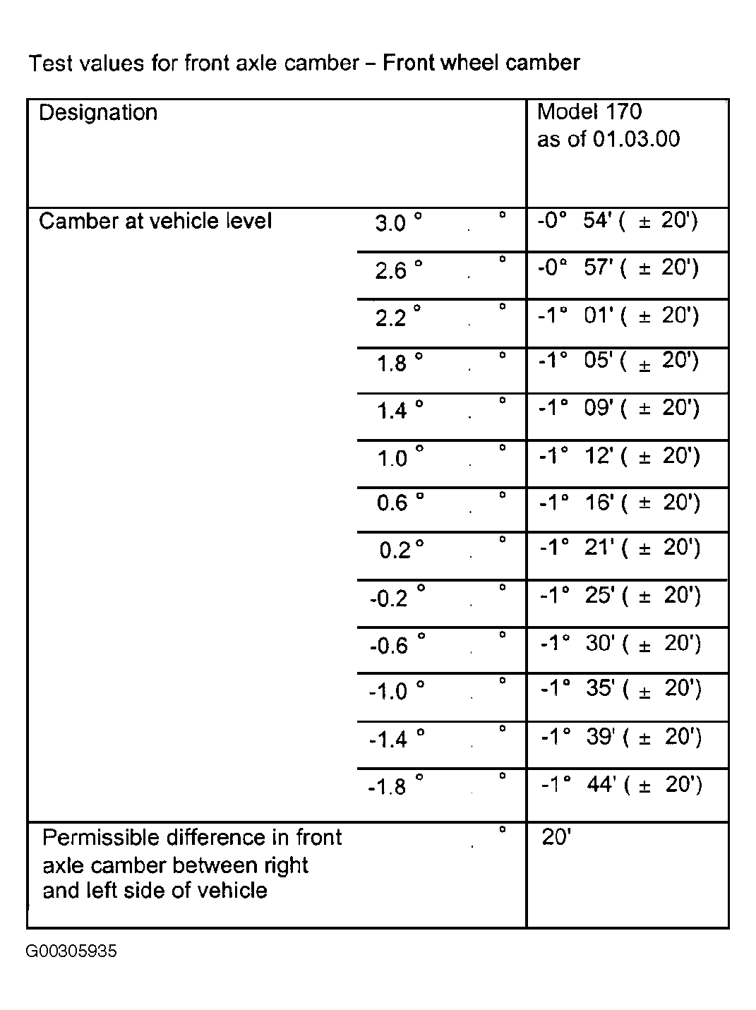 | Front Axle Toe-In | 0° 20' | +/-10' | ||||||||||||||