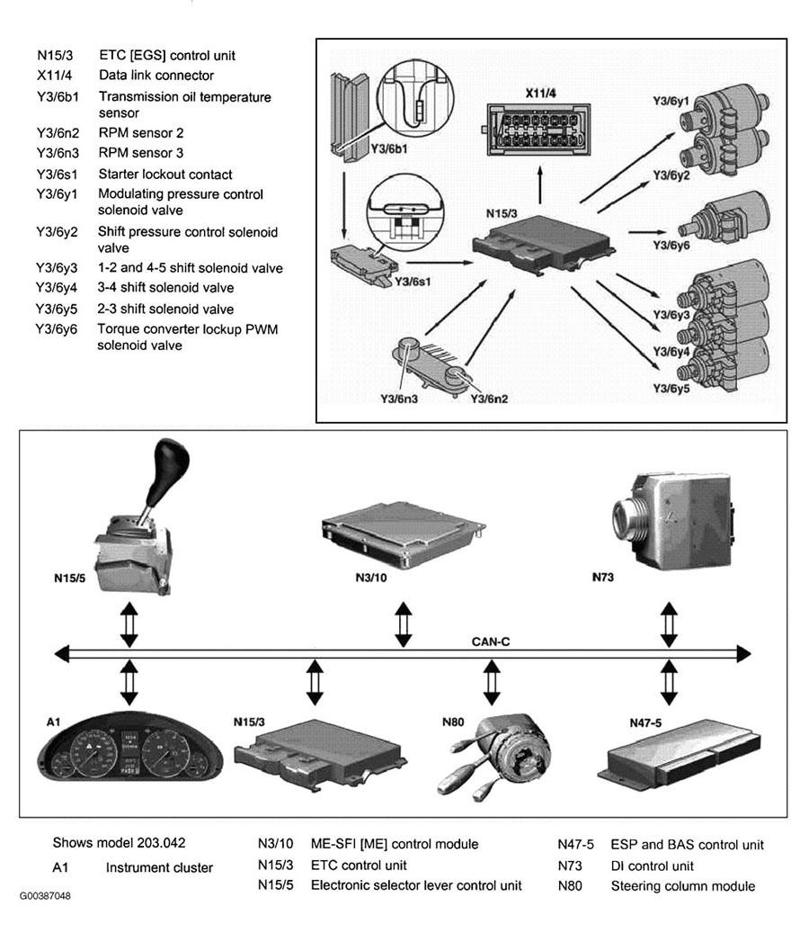 The ETC [EGS] control unit takes over the actuation of the solenoid valve for modulating and shift pressure and for the shifting gears (N15/3).
