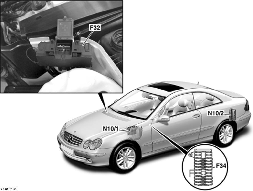 | Front Prefuse Box (F32) | Right rear of engine compartment. See Figure. |