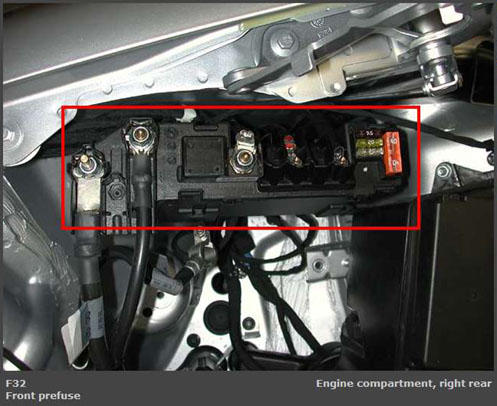 | Front Prefuse (2007-08) | Right rear of engine compartment. See Figure. |
