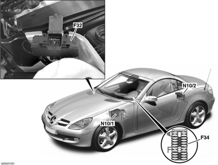 | Driver-Side SAM Control Module With Fuse & Relay Module (N10/1) | Left rear of engine compartment. See Figure. |