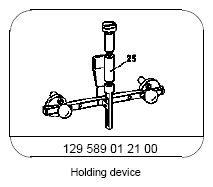 | Risk of accident caused by vehicle starting off by itself when engine is running. Risk of injury caused by contusions and burns during starting procedure or when working near the engine as it is running | Secure vehicle to prevent it from moving by itself. Wear closed and snug-fitting work clothes. Do not touch hot or rotating parts. |