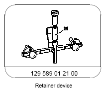 | 3 | Turn rack-and-pinion steering (5) to center position (front wheels in straight-ahead position) and fix steering wheel in place using holding device | Do not turn the steering wheel when the steering coupling (1) has been detached. Otherwise the clock spring contact will be destroyed. |