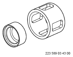 | 10 | Check elastomer bearing in spring link (2) for condition, damage and variant. | If there is a problem on the elastomer bearing without camber correction, ↓ replace spring link (2). If there are problems on the elastomer bearing with camber correction, ↓ replace elastomer bearing of spring link (2). |