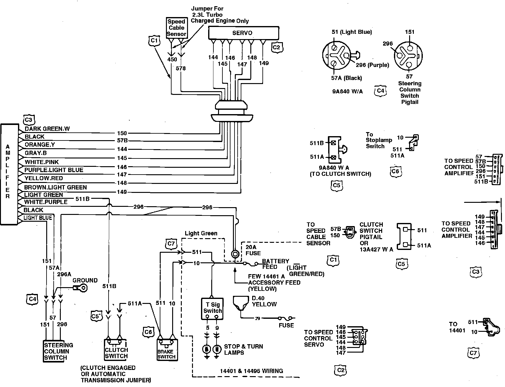 Fig. 1 Speed control wiring schematic (typical). 1982---83 Fairmont & Zephyr, 1982---87 Mustang & Capri; 1982 Granada; 1982---83 Cougar; 1983---86 LTD & Marquis: