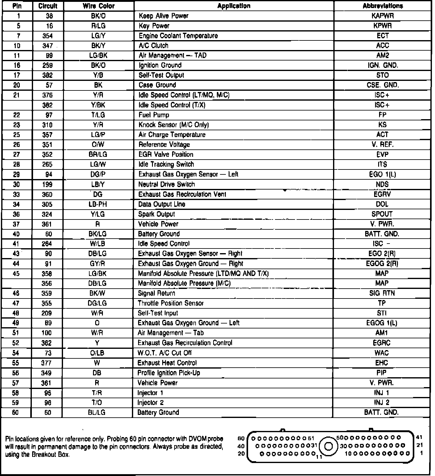 Fig. 163 EEC-IV module connector pin usage. 1985 V6-232 W/CFI:
