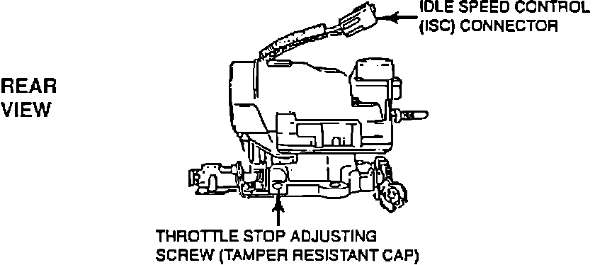 ^ Place a small quantity of room temperature vulcanizing (RTV) compound in the idle screw adjusting hole of the throttle body. This space was previously covered by the tamper resistant cap.
