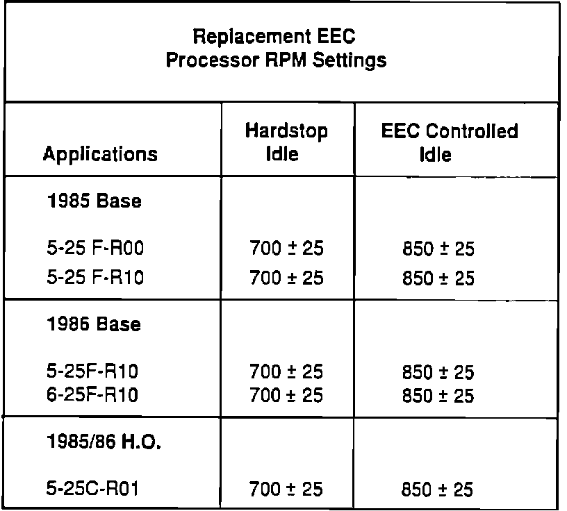 NOTE: Idle speeds are controlled by EEC-IV processor and idle speed control motor. If the ISC motor system is operating properly, these speeds are fixed and can not be changed by traditional adjustment techniques.
