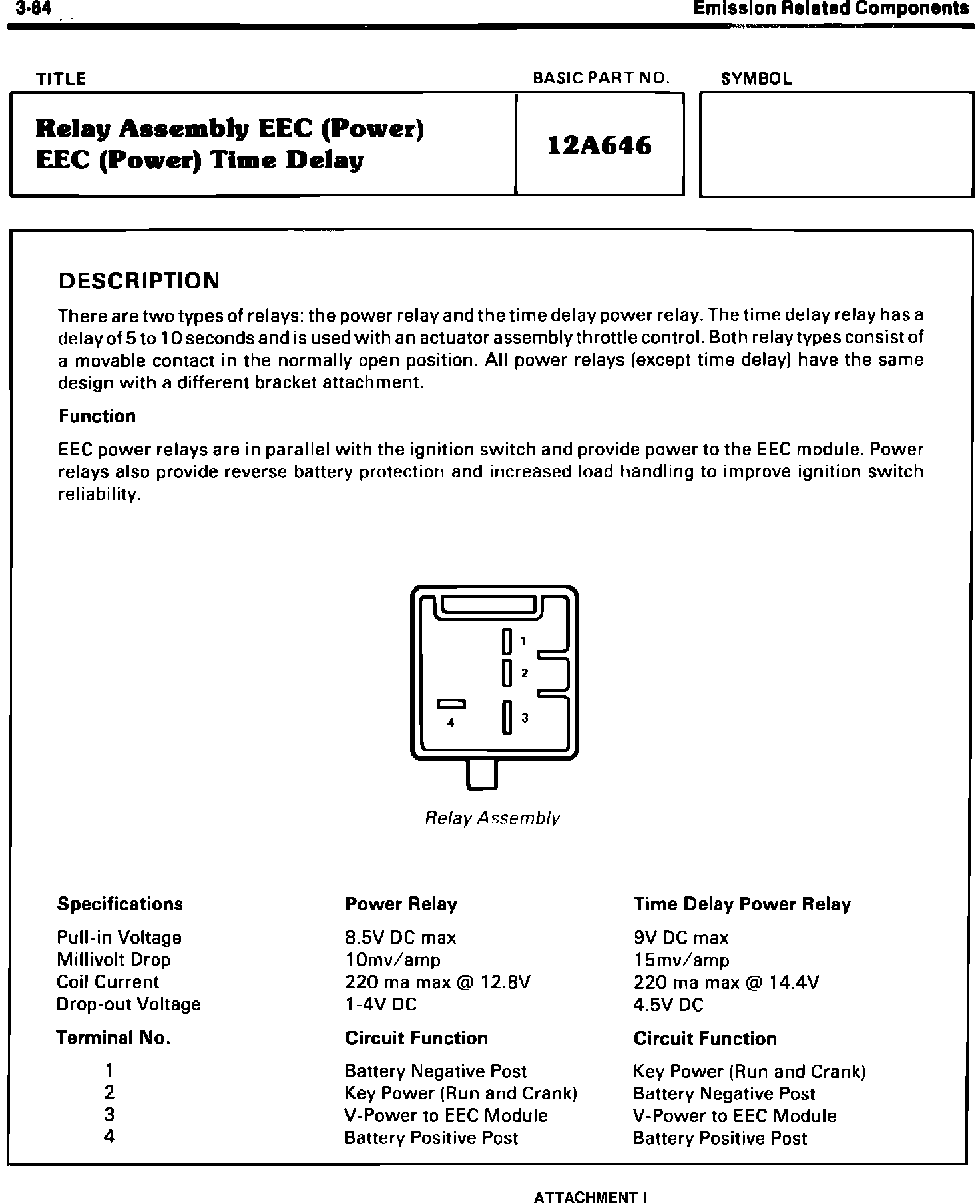 EEC IV Power Relay - Shop Manual Revisions/Updates