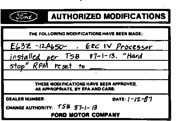 Obtain an Authorized Modifications Decal and list the date, dealer number, and summary of alterations performed. Select a prominent place adjacent to the Vehicle Emission Control Information Decal suitable for installing the Authorized Modifications Decal. Clean the area, install the decal, and cover it with a clear plastic decal shield.