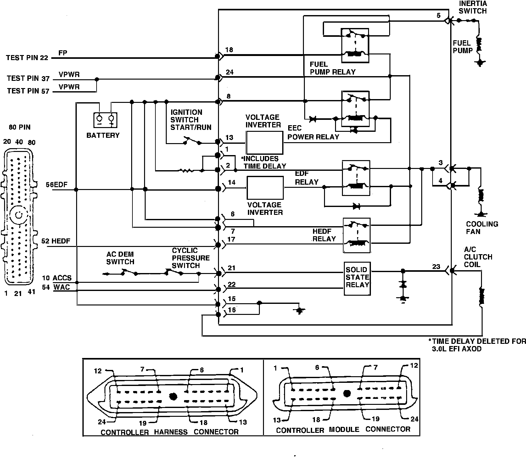 7. With ignition switch in the Off position, disconnect integral controller. Using a suitable digital volt/ohmmeter, check resistance between integrated controller pins 17 and 24.