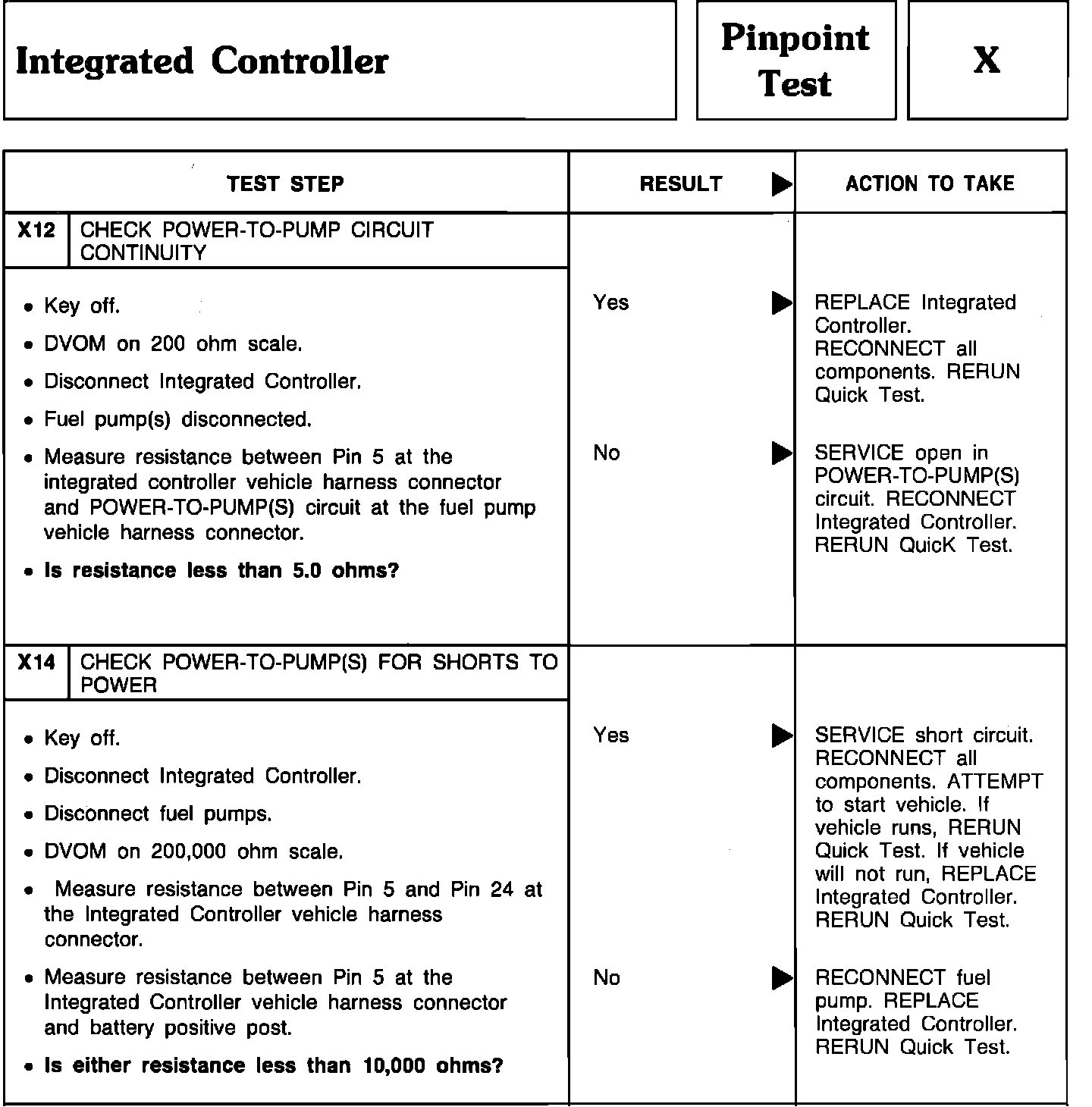 Pinpoint Test X12 Thru X14 - Integrated Controller: