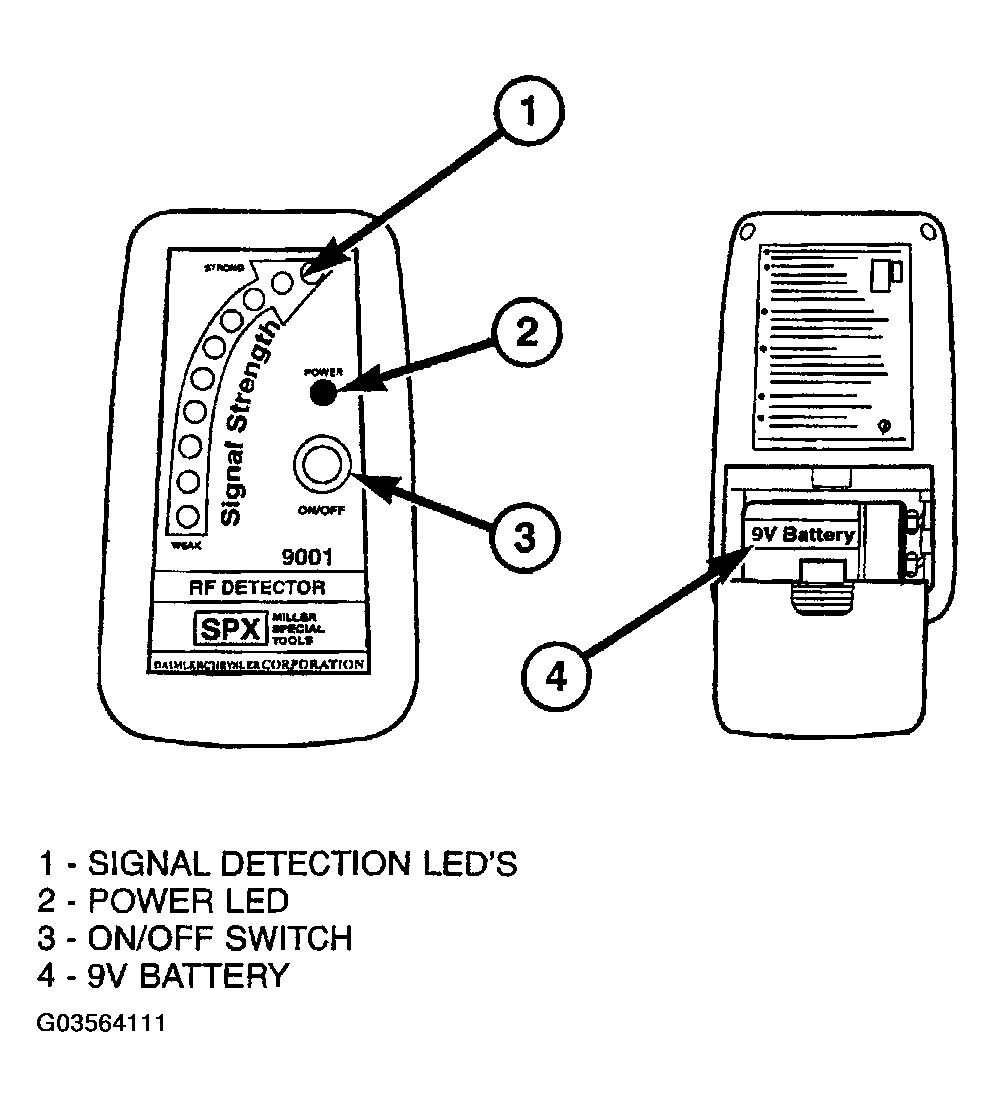 3. The red signal detection LEDs will light and the tool will beep if a radio signal is detected. Repeat this test three times.