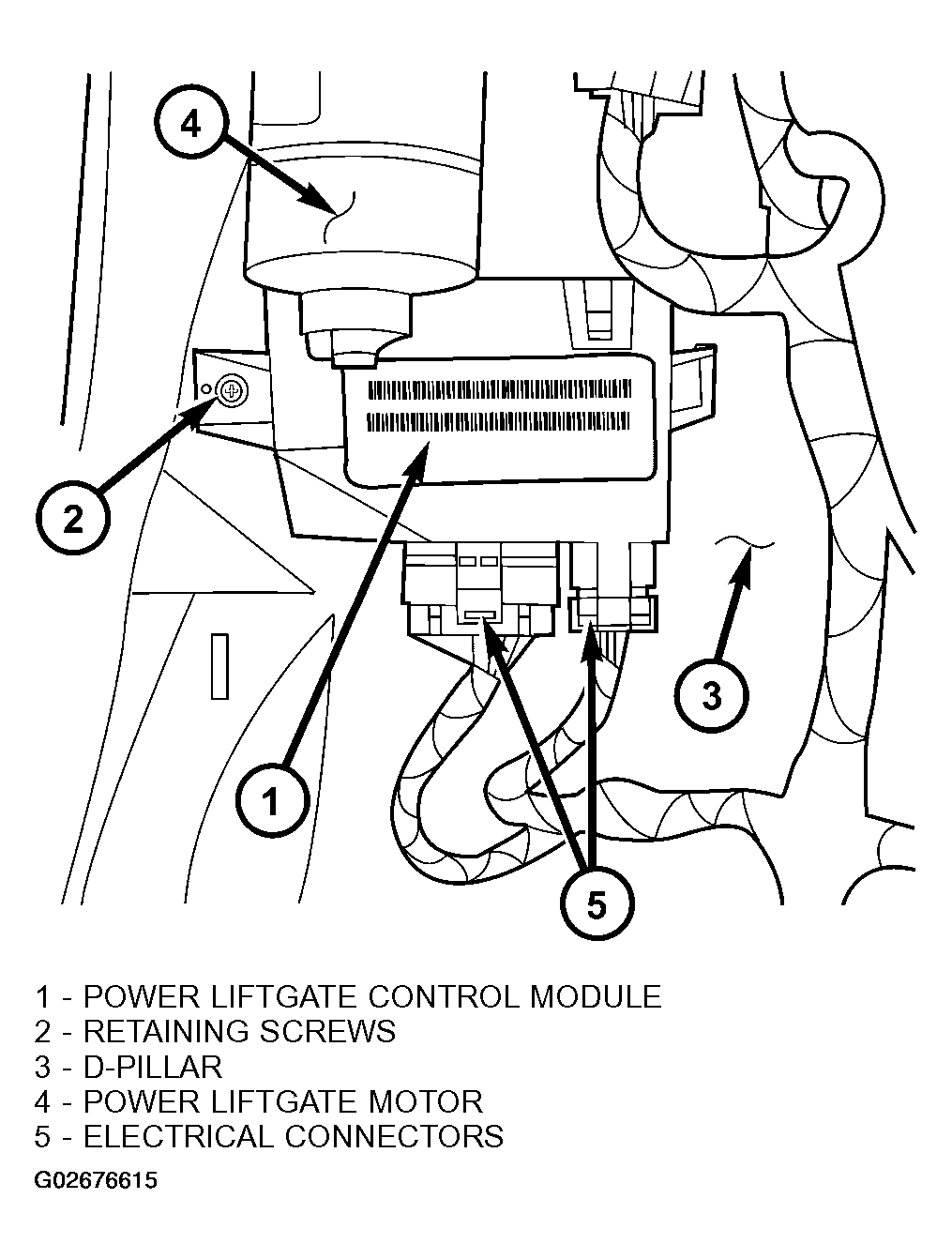 - Remove the screw holding the PLG control module to the D-pillar (Figure).