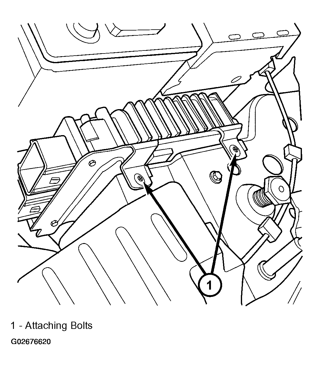 - Remove the 2 upper PCM bracket bolts (Fig 1).