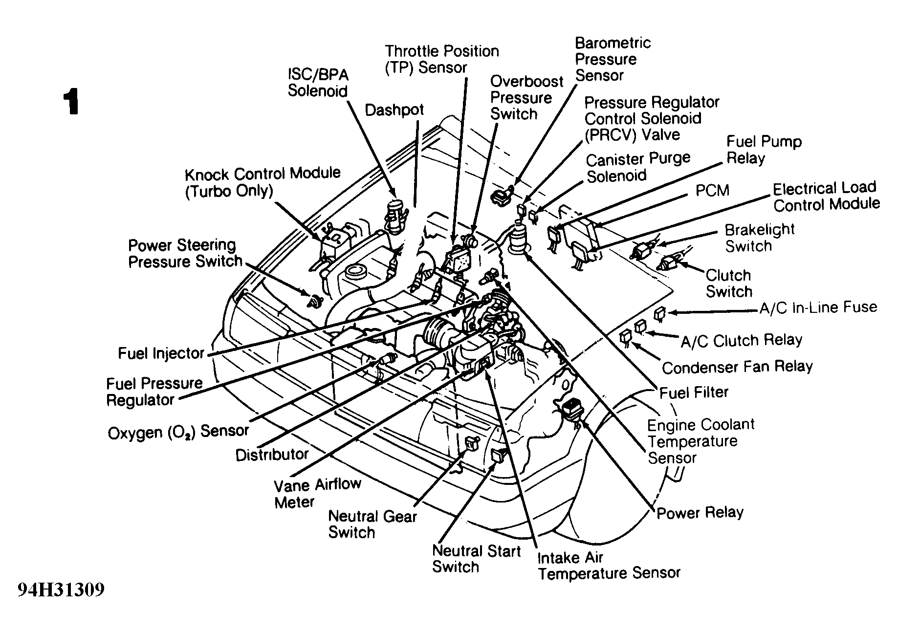 | Knock Control Module (Turbo) | On right side of engine bay, on fender panel. See Figure . |