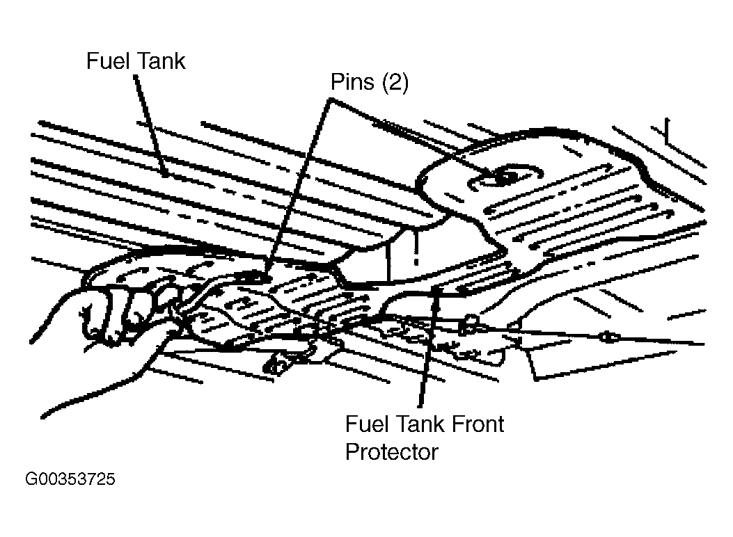 - Place a jack under the fuel tank to support it when the fuel tank support straps are removed.
