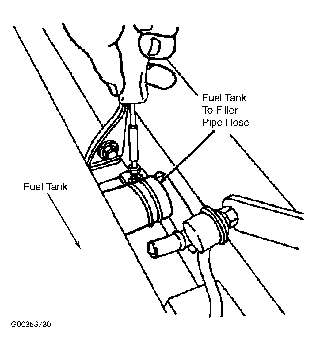 - Separate the fuel tank to filler pipe hose from the fuel tank filler pipe.