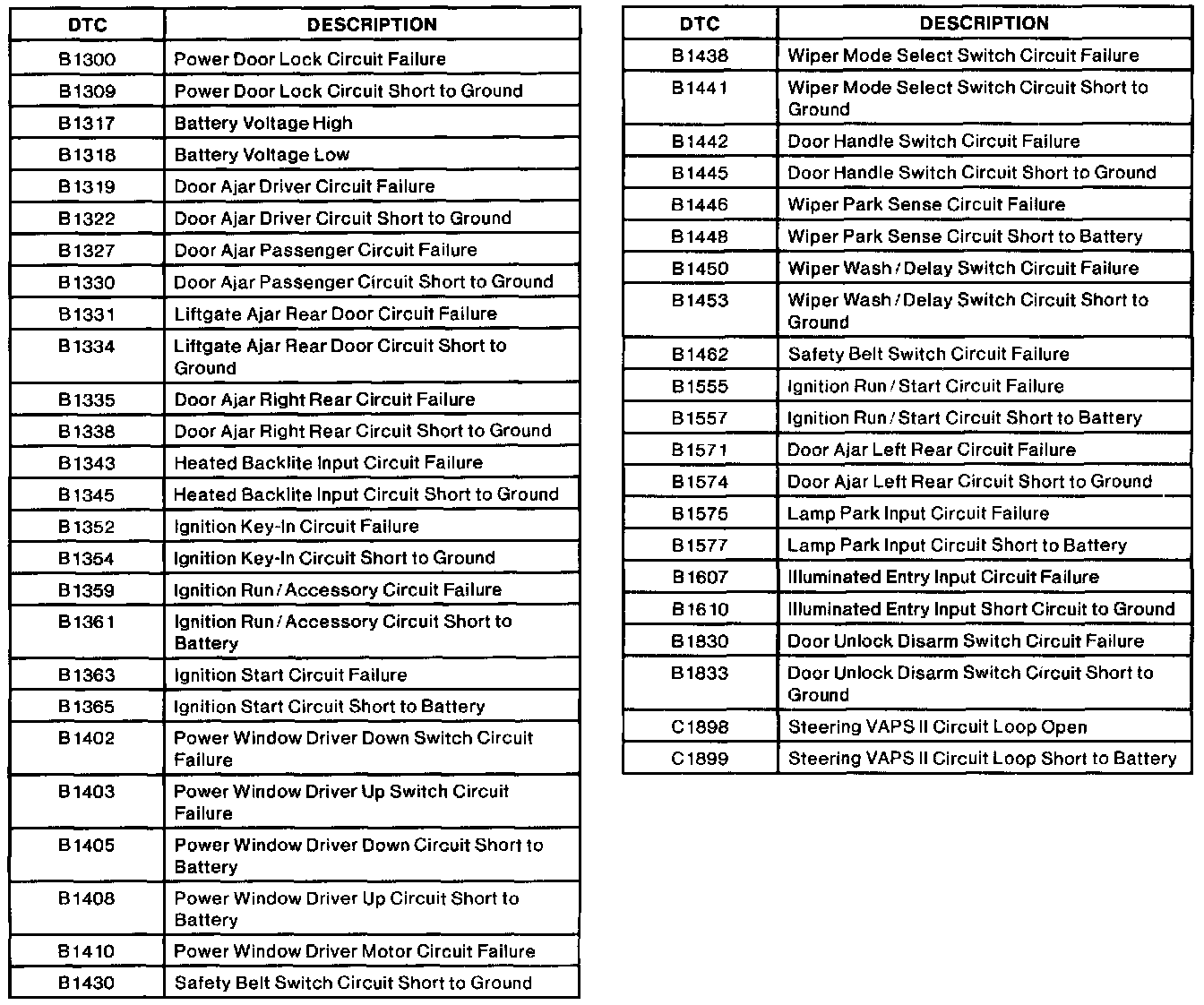 Diagnostic Trouble Code Descriptions