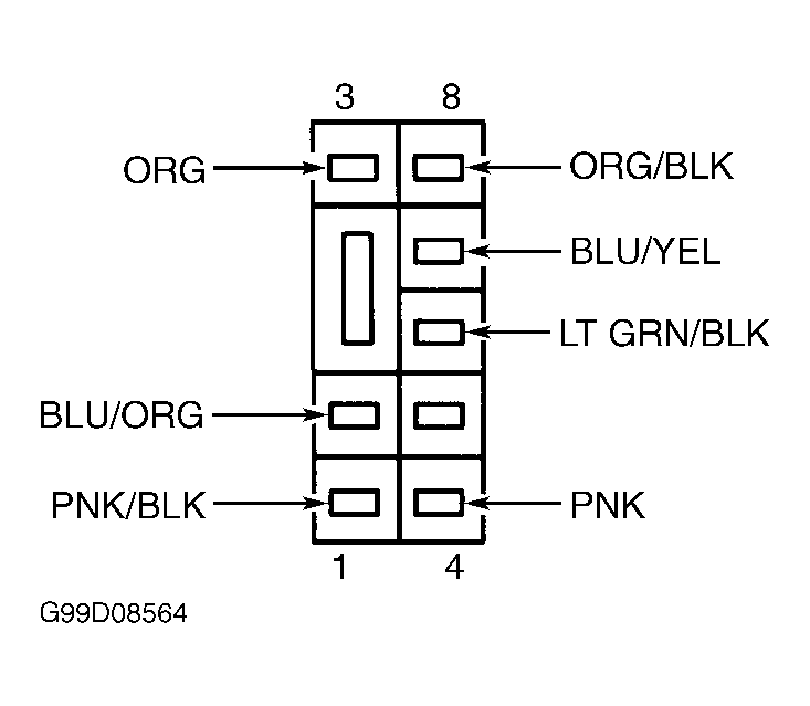 - Measure resistance of Blue/Orange wire between passenger's power window switch connector C608 terminal No. 2 and passenger's power window motor connector. Resistance should be less than 5 ohms. Measure resistance between ground and passenger's power window switch connector C608 terminal No. 2 (Blue/Orange wire). Resistance should be greater than 10 k/ohms. If resistances are as specified, replace passenger's power window switch and retest system operation. If resistances are not as specified, repair open or short to ground in Blue/Orange wire. Retest system operation.