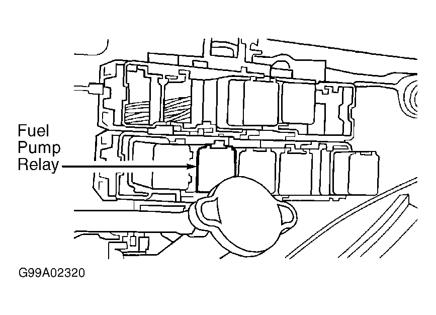 Remove fuel pump relay. See Fig 1. Start engine. If engine does not start, crank engine 4-5 times and turn ignition off. If engine starts, wait for engine to stall, then crank engine 4-5 times. Turn ignition off. Reinstall fuel pump relay. Wrap a rag around fuel line connection. Open fuel line and release fuel pressure.