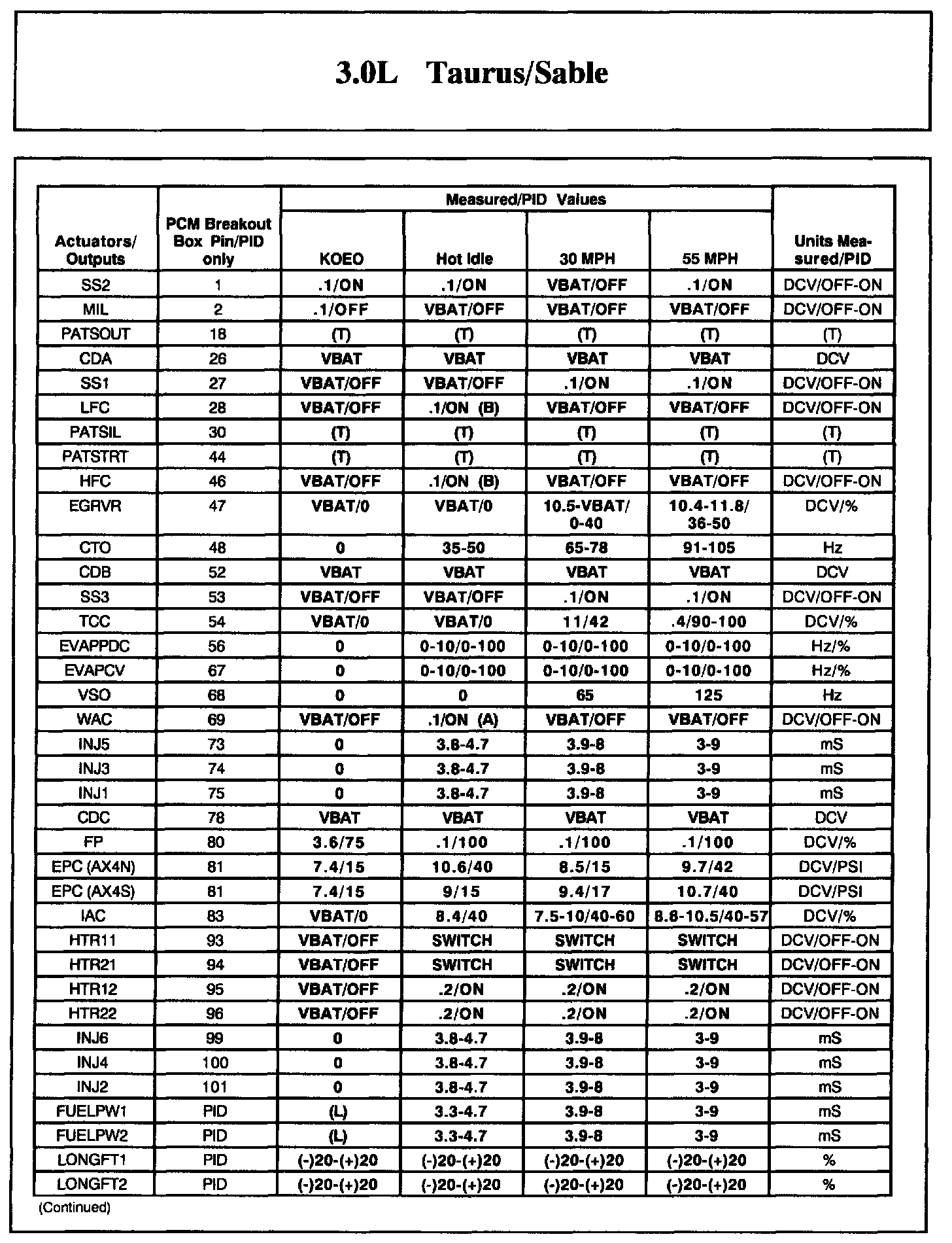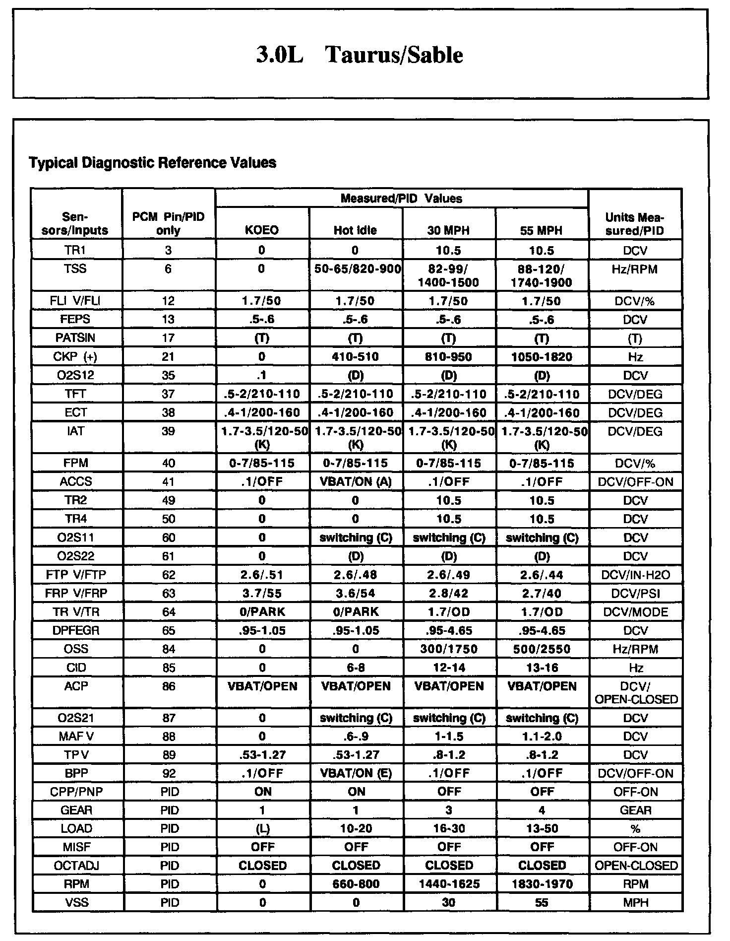Sable V6-3.0L VIN U