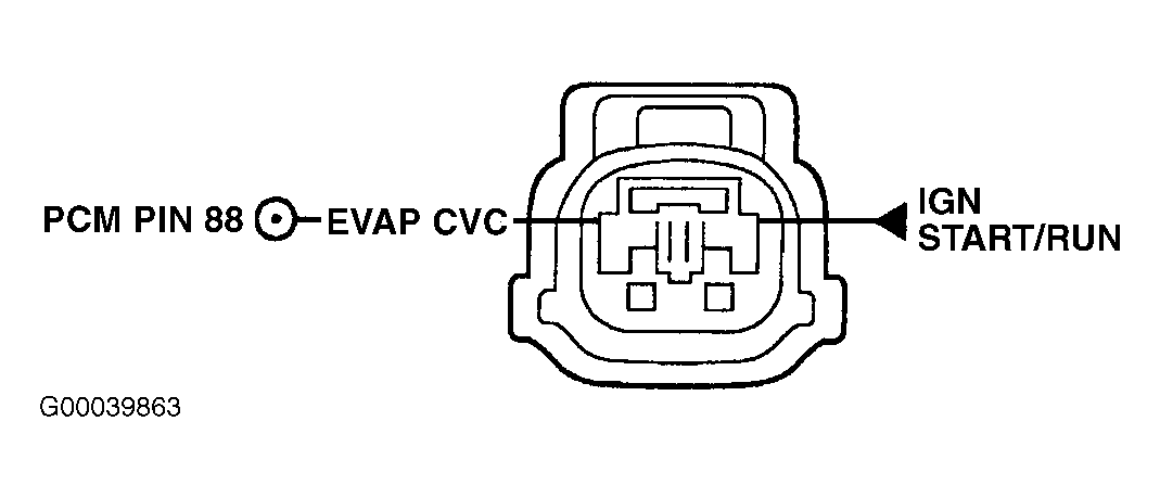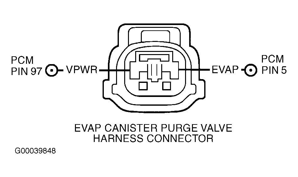 Turn ignition off. Disconnect EVAP canister purge valve harness connector. Turn ignition on. Using DVOM, measure voltage between chassis ground and VPWR circuit at EVAP canister purge valve harness connector. See Figure. If voltage is more than 10 volts, go to next step. If voltage is 10 volts or less, go to TEST B , step 1) to test PCM power relay circuit. If PCM power relay circuit is okay, repair open in VPWR circuit to EVAP canister purge valve. See WIRING DIAGRAMS article. - 16) Check EVAP Canister Purge Volume Control Valve Circuit