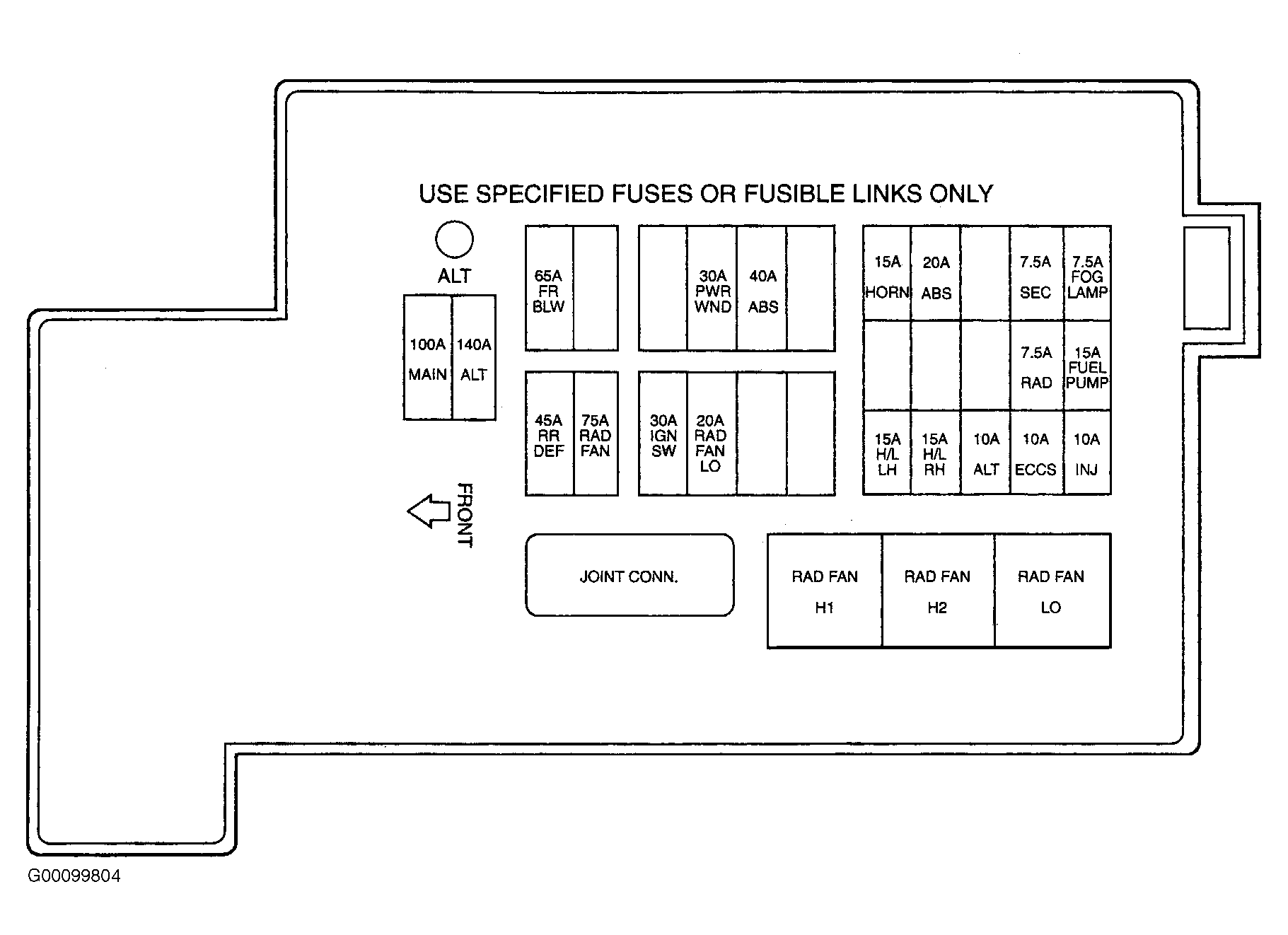 Turn ignition off. Remove suspect relay from battery junction box. See Figure. Turn ignition on. Using DVOM, measure voltage between chassis ground and PWR circuit to suspect relay cavity No. 1. See Figure. If voltage is more than 10 volts, go to next step. If voltage is 10 volts or less, repair open in affected PWR circuit. See wiring diagram in ELECTRIC COOLING FANS - VILLAGER article in ENGINE COOLING. - 3) Check SIG Circuit To PCM For Open