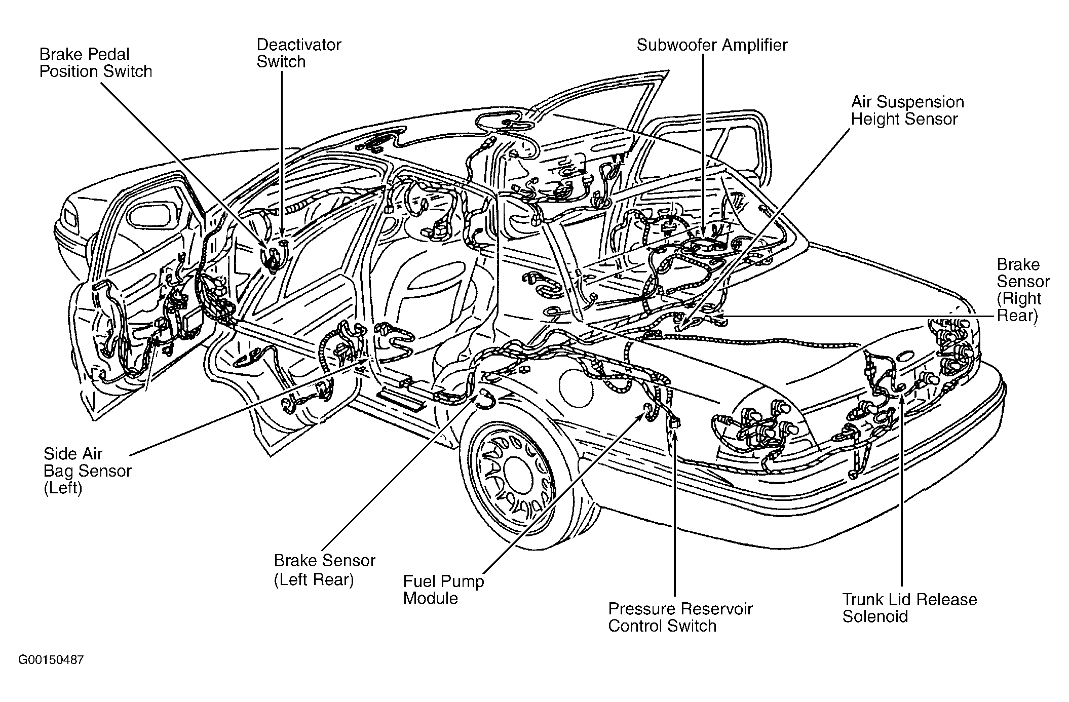 | Fuel Pump Module | On left front side of trunk. See Figure. |