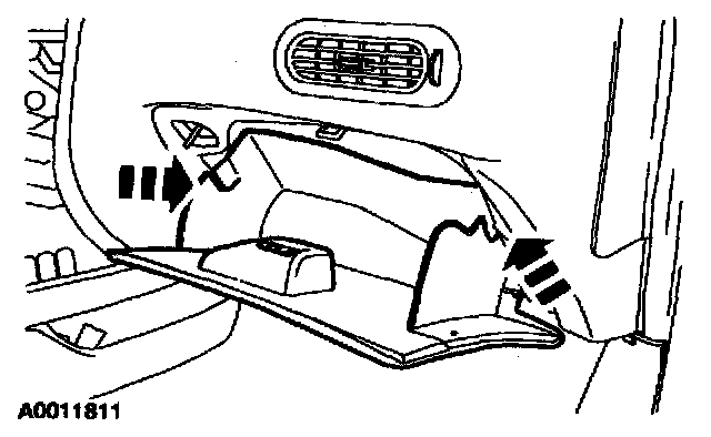 3. Open the glove compartment. Pressing the tabs inward, lower the glove compartment towards the floor.